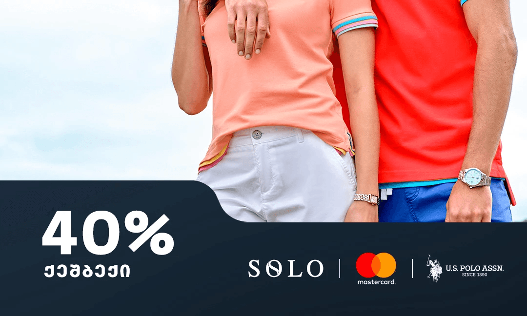ეწვიეთ სითი მოლში ASSN U.S. POLO-ს, გადაიხადეთ SOLO Mastercard World Elite ბარათით და დაიბრუნეთ გადახდილი თანხის 40%, მაქსიმუმ 250 ლარი